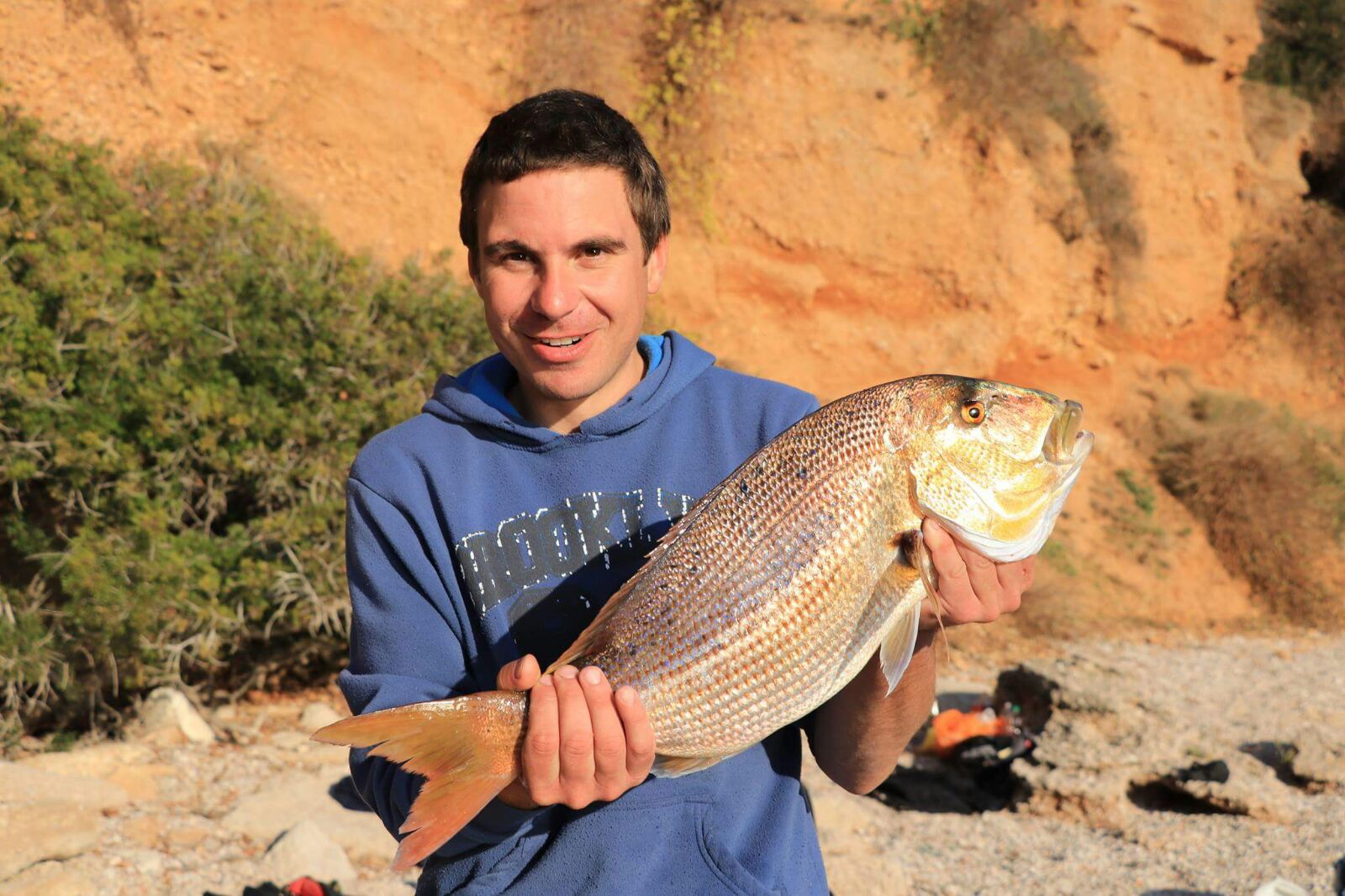 Došli smo do kalume koja je već lipo bila daleko od kraja. Melani je bila ta koja će izvlačit ribu. Počela je dizat i nakon par min je osjetila kontre… nema šta, tu je riba! No, podvukla se u bužu i ne moremo je izvadit. Jeri je uporno i strpljivo kružija oko zadiva ne bi li popustila. Ali nema šanse. Melani je prokrvarila prste, probat će Jeri. Ma ni čut, zavukla se u lipu bužu i počela su nagađanja, veliki ugor, kirnja, zubatac, sve je moglo bit. Kružili smo kružili i napokon pametniji popustija… Jeri je to počea lipo vadit i zabilija se, zubonja! Ajmoooooooooooooooooooooooooooooo! E sad smo mogli na miru izist meso s gradela :)))))